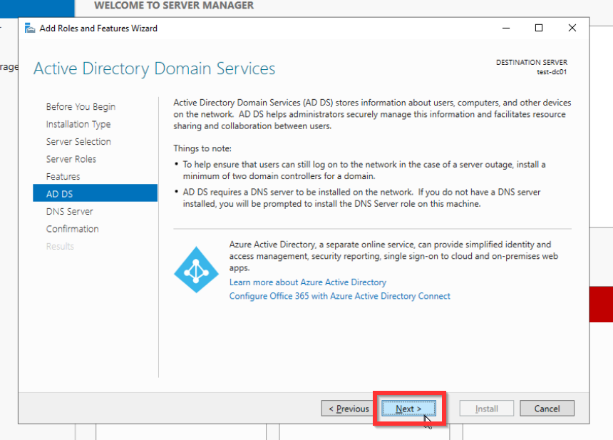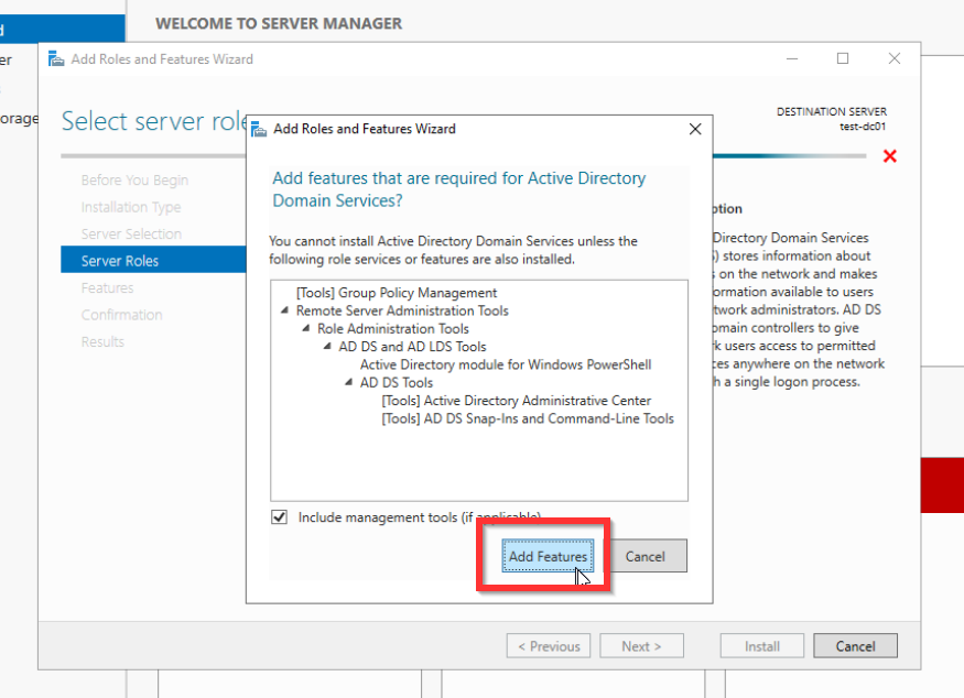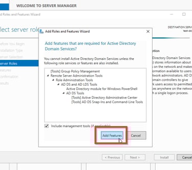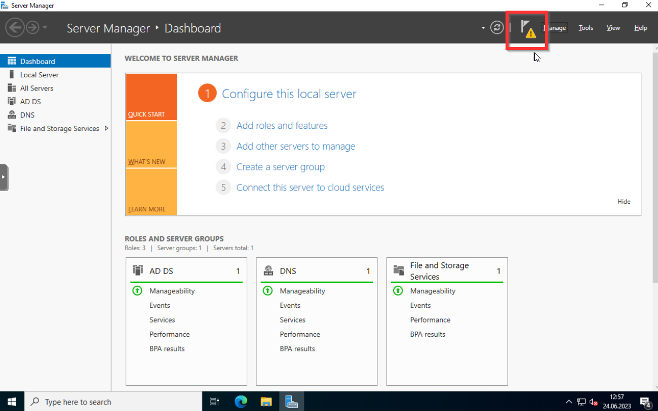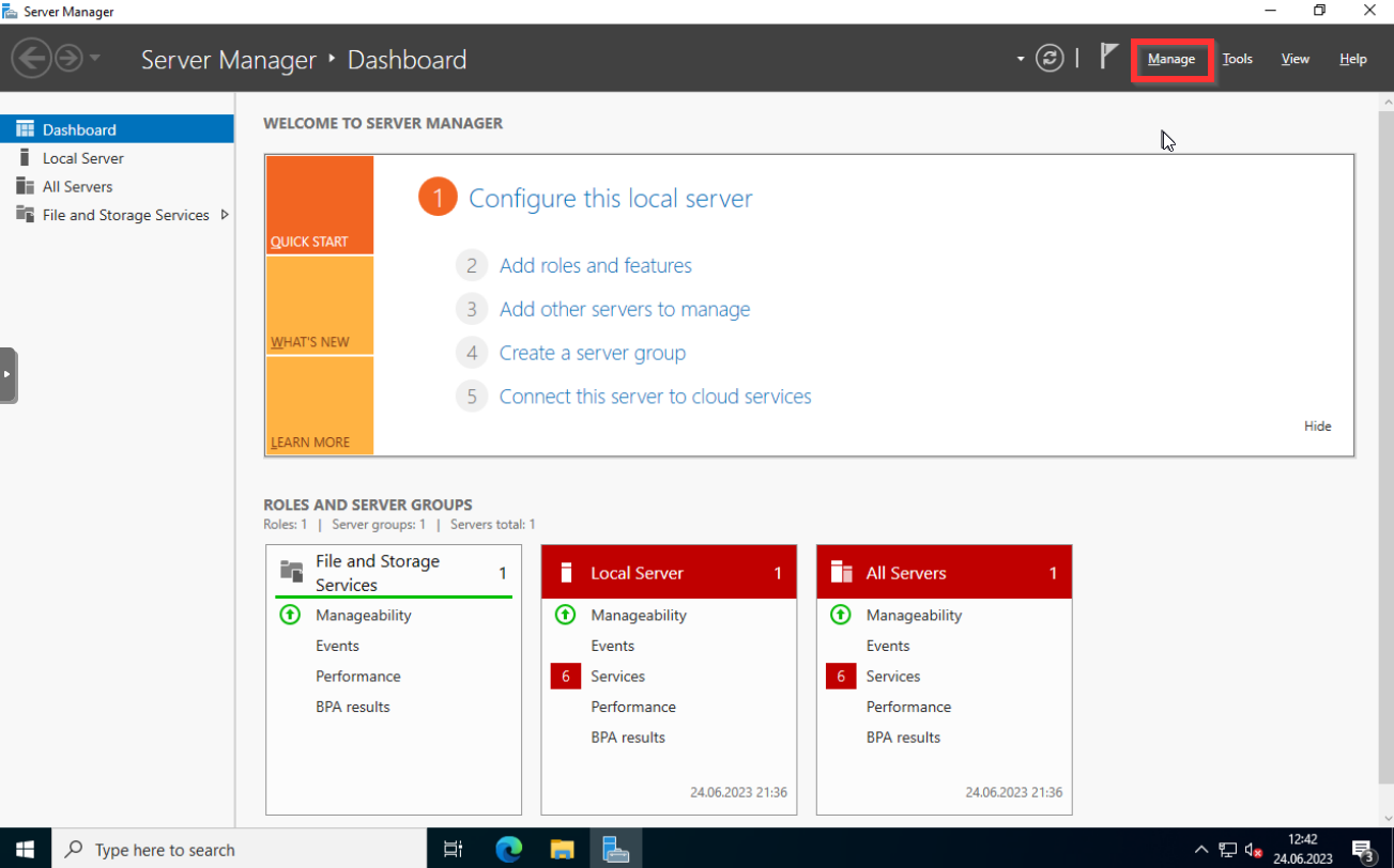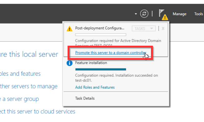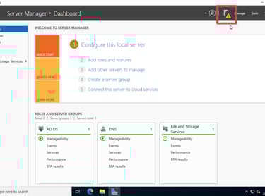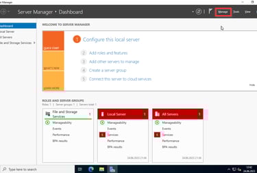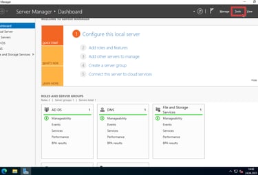 Um mit der einrichtung des AD zu beginnen klickt ihr oben rechts auf Manage und dann auf Add Roles and Features