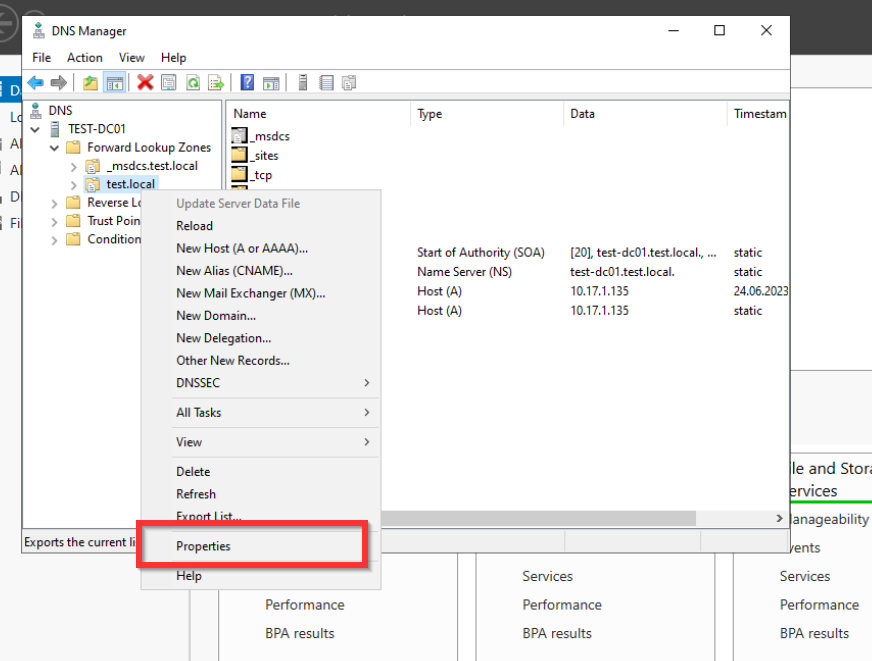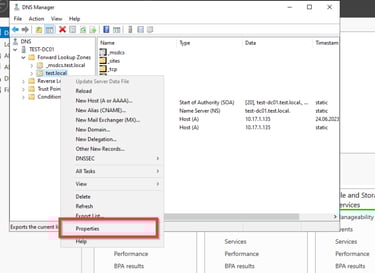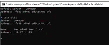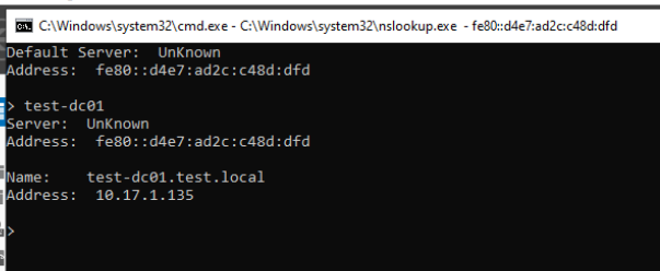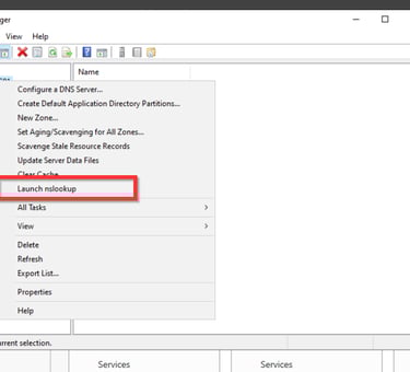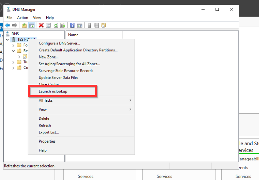 Jetzt haben wir erfolgreich die Reverse Look Up Zone eingerichtet. Nun können wir auch nachschauen, ob der DNS-Eintrag funktioniert. Dafür machen wir eine Rechtsklick auf unseren Domain Namen und klicken auf Launch nslookup. Hier geben wir den Hostnamen unseres Domaincontrollers ein. Diesen könnt ihr auch über die CMD mit dem Befehl hostname herausfinden. Wenn alles funktioniert sollte der Hostname zu der IP-Adresse eures Domaincontrollers aufgelöst werden.