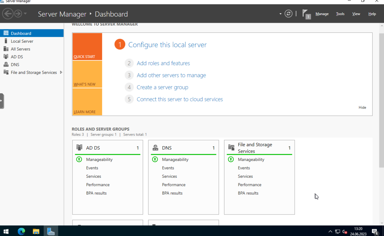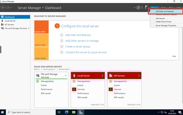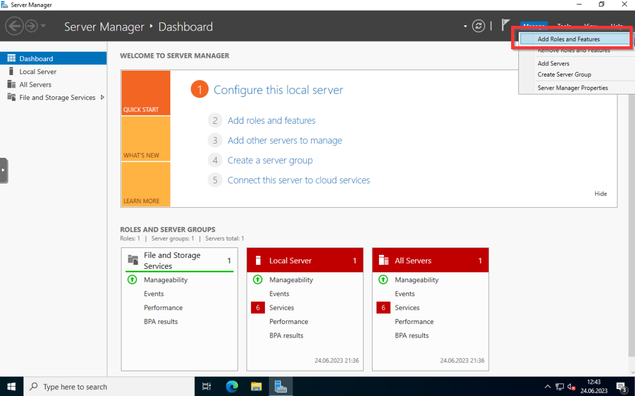 Nachdem ihr Windows Server installiert habt und euch mit dem während der Installation erstellten Administratorkonto anmeldet startet automatisch der Server Manager. Über den Server Manager könnt ihr Services für den Server installieren und verwalten.