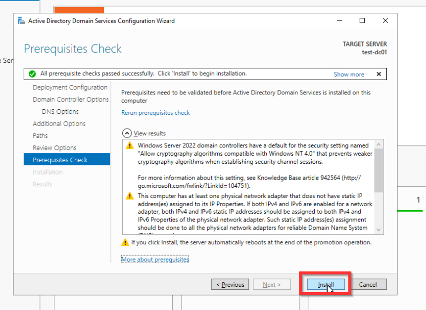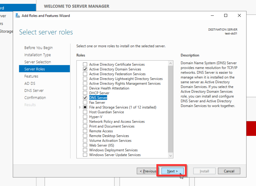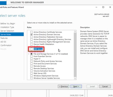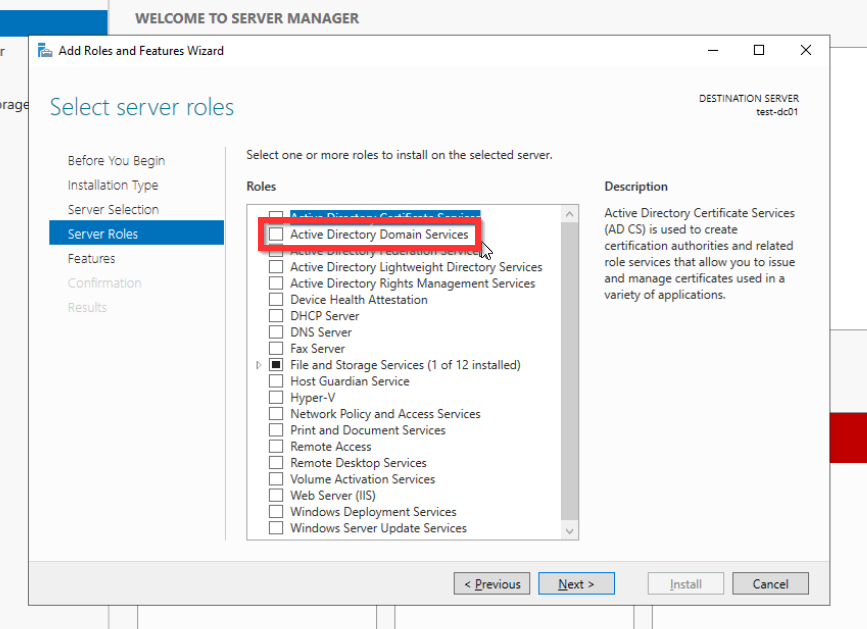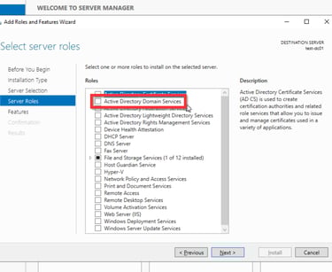 Wie bereits erwähnt wird das AD auf einem Windows Server installiert. Dabei spielt es keine Rolle, ob der Server bare-metal oder als virtuelle Maschine (VM) installiert wird. Meistens findet zweiteres anwendung. Um eine Domäne mit einem AD zu verwalten muss dieser Server als ein Domaincontroller (DC) konfiguriert werden.