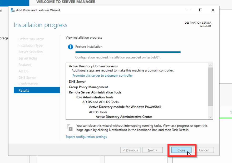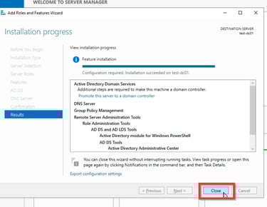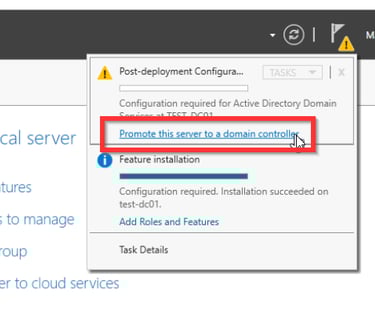 Jetzt werden die ausgewählten Server Rollen installiert. Jetzt ist es an der Zeit den Server zu einem Domaincontroller umzuwandeln. Dafür geht ihr wie folgt vor.