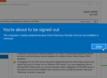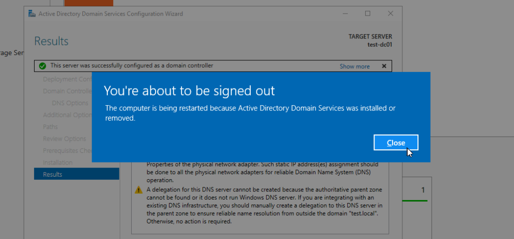 Herzlichen Glückwunsch! Ihr habt jetzt euren ersten eigenen Domaincontroller eingerichtet und konfiguriert, sodass andere System der Domäne beitreten können und auch Internetanfragen verarbeitet werden können. Der nächste Schritt ist ein System aufzusetzen oder vorhandenes System in die Domäne einzubinden. Wie das geht, seht ihr in in einem anderen Post von mir.