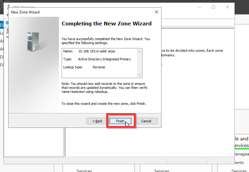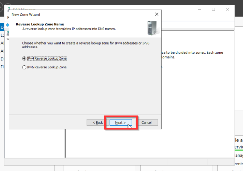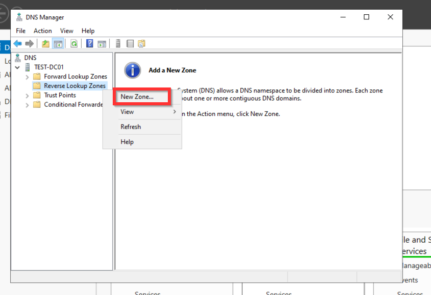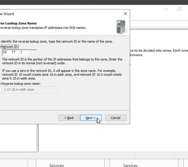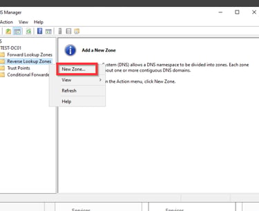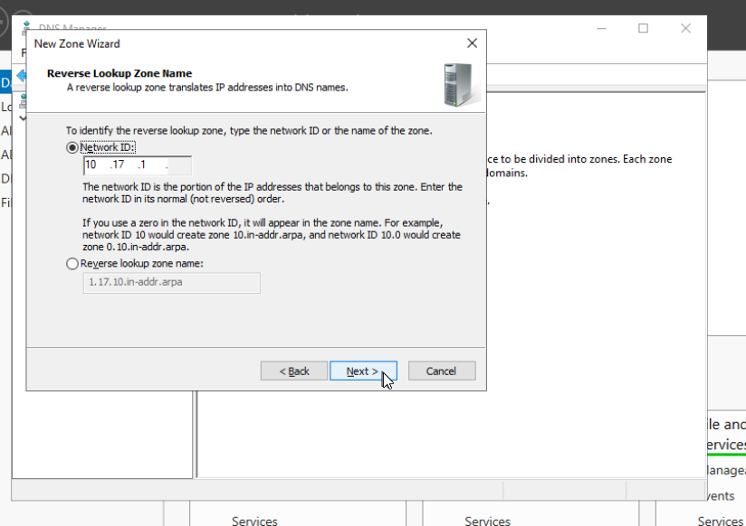 Als erstes konfigurieren wir die Reverse Look Up Zone damit andere Systeme den Domaincontroller finden und der Domäne beitreten können.