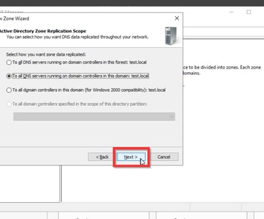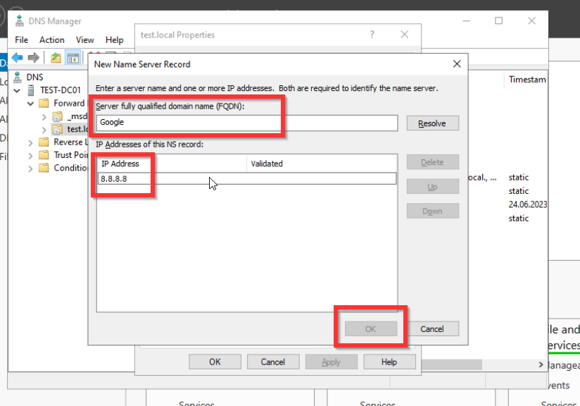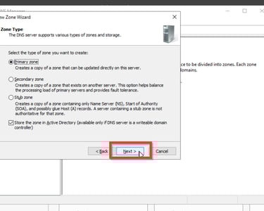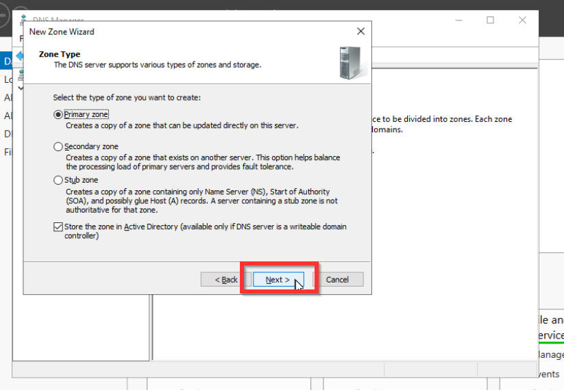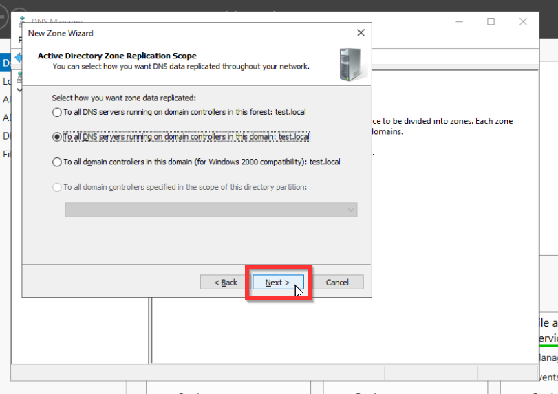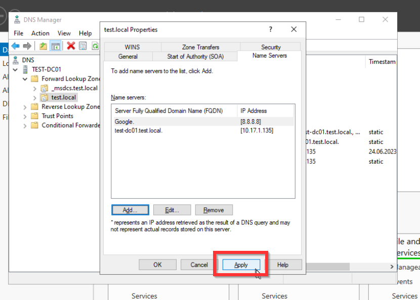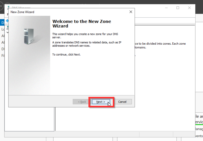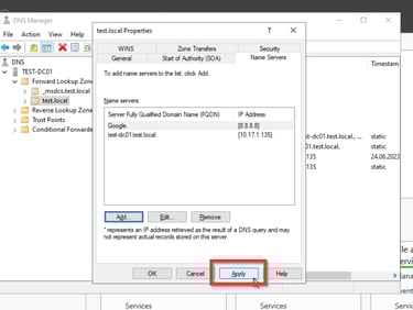 Als letztes müssen wir noch die Forward Look Up Zone konfigurieren. Dies ist nötig, damit die Anfragen der anderen Systeme wie zum Beispiel der Aufruf von www.google.de von unserem Domaincontroller an einen DNS-Server weitergegeben wird, der diese Anfrage verarbeiten kann. Denn der Domaincontroller kann diese Anfrage nicht auflösen.