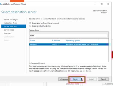 Zunächst müsst ihr ein System mit Windows Server installieren. Hierbei kann es sich wie gesagt entweder um einen physischen Server handeln, zum Beispiel ein alter PC von euch, oder um eine VM. Ich installiere Windows Server 2022 in diesem Fall als eine VM. Solltet ihr nicht wissen, wie ihr Windows Server installiert, klickt gerne hier um meinen Beitrag zur Windows Installation zu lesen.